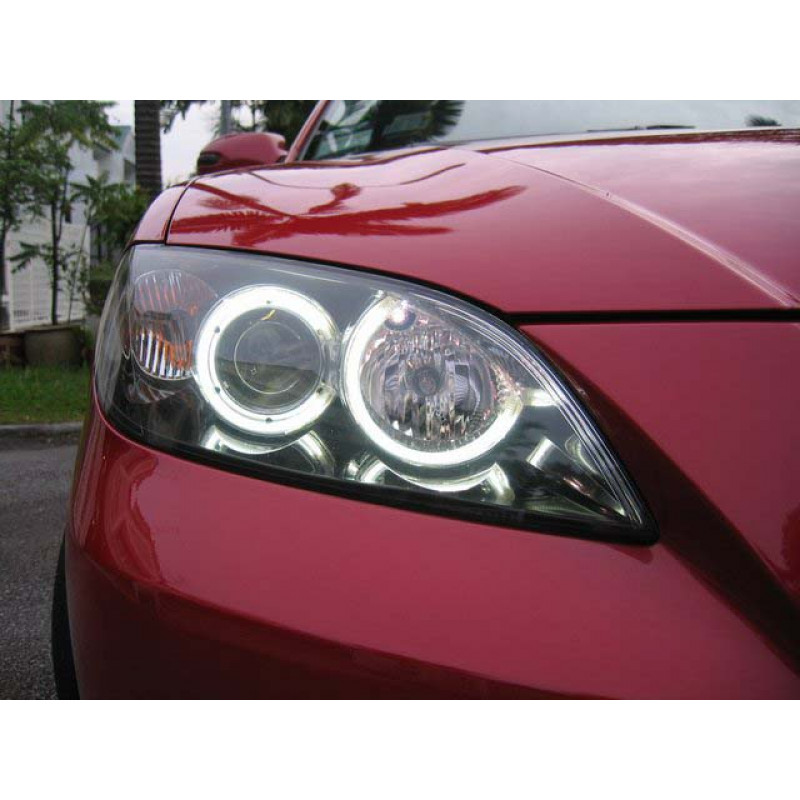 Комплект Ангельские глазки CCFL Mazda 3 состоит из 4-х колец и 2-х блоков розжига и предназначен для установки на две фары автомобиля. Сами глазки крепятся внутри фары на двусторонний скотч. Прекрастно видны днем и ночью, отлично смотрятся со стороны, придадут вашему автомобилю агрессивный вид и выделят из потока.