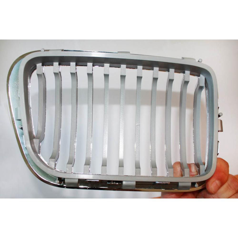 Решетка радиатора для BMW E36 '96-97 годов выпуска придаст вашему автомобилю неповторимый вид. Выполнена из пластика с хромированной окантовкой и хромированными ребрами. Внутри матовый серый пластик под серебро.