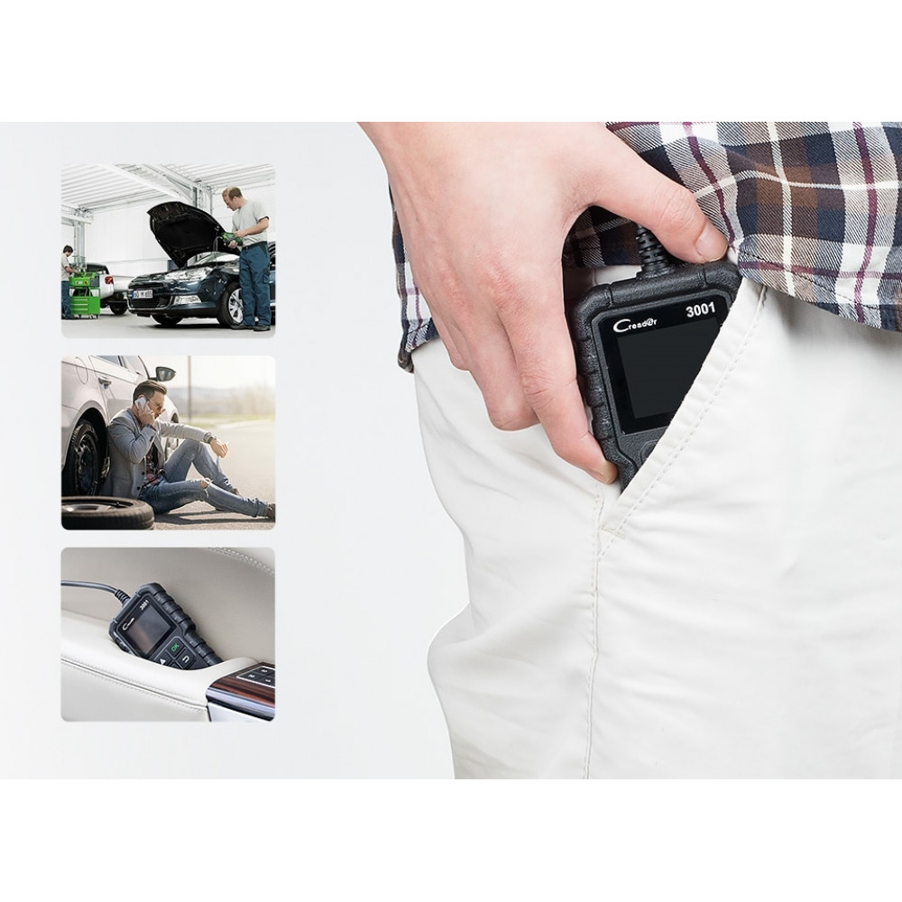 Creader 3001 предназначен для подключения к автомобилям до 2019 года выпуска, поддерживающим стандартный протокол обмена данными OBDII (включая все OBD2 / eOBD протоколы: ISO9141-2, ISO14230-4, SAEJ1850, ISO15765-4, а также CAN BUS).