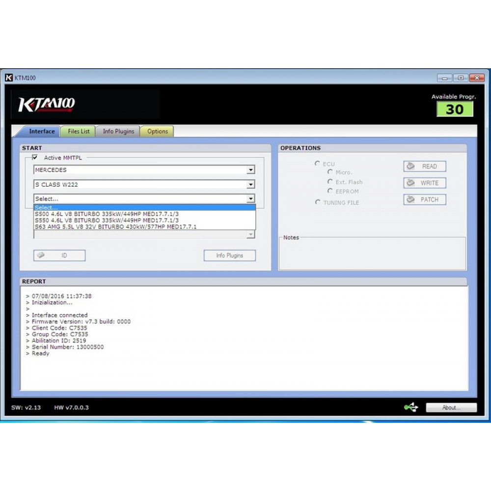 KTM 100 работает совместно с программой Trasdata от Dimsport, разработчика известного BDM100. В новой программе с новой прошивкой добавлена поддержка работы с бензиновыми блоками новых авто BMW F серий, а также блоками Mercedes W222 и др. Отлично поддерживается BDM функция, доступны протоколы BDM MOTOROLA MPC5xx. Охват ПО прибора KTM100 по программированию блоков - это легковые (Car), Мотоциклы (Motorcyle) и Грузовики.