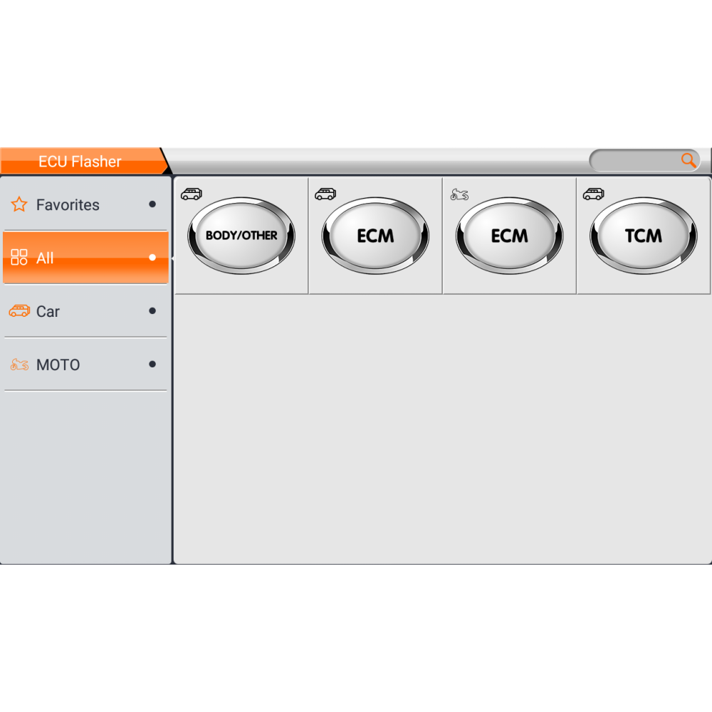 - Поддержка интеллектуального поиска по марке, модели, номеру детали, производителю ECU, типу контроллера MCU.