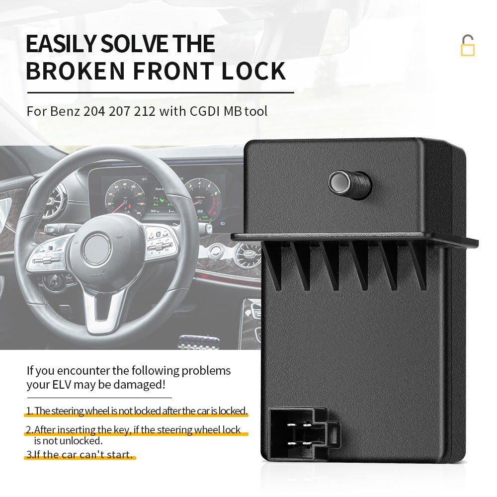 В кузовах W204, W207, W212 защелка ESL часто ломается и невозможно пользоваться автомобилем. В этом случае поможет CGDI ELV эмулятор (Simulator). Такое происходит когда ломается ESL моторчик и его нужно менять, или NEC чип заблокирован (теоретически его можно разблокировать, но на практике нужно менять блок ESL).