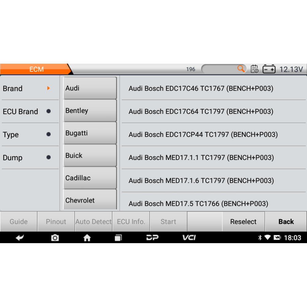 OBDSTAR DC706 Список поддерживаемых брендов ЭБУ двигателя:
