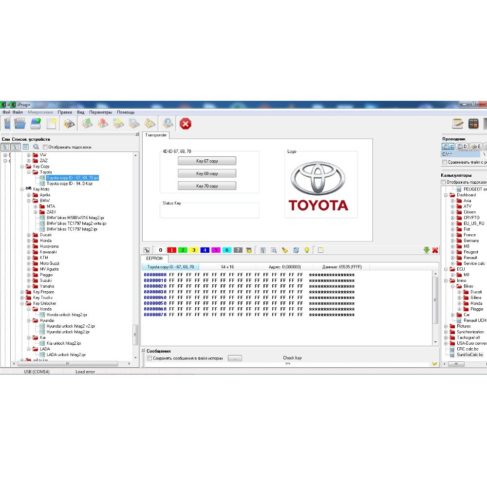 - Работа с ключами (ИММО, Транспондеры), копирование, подготовка, разблокировка