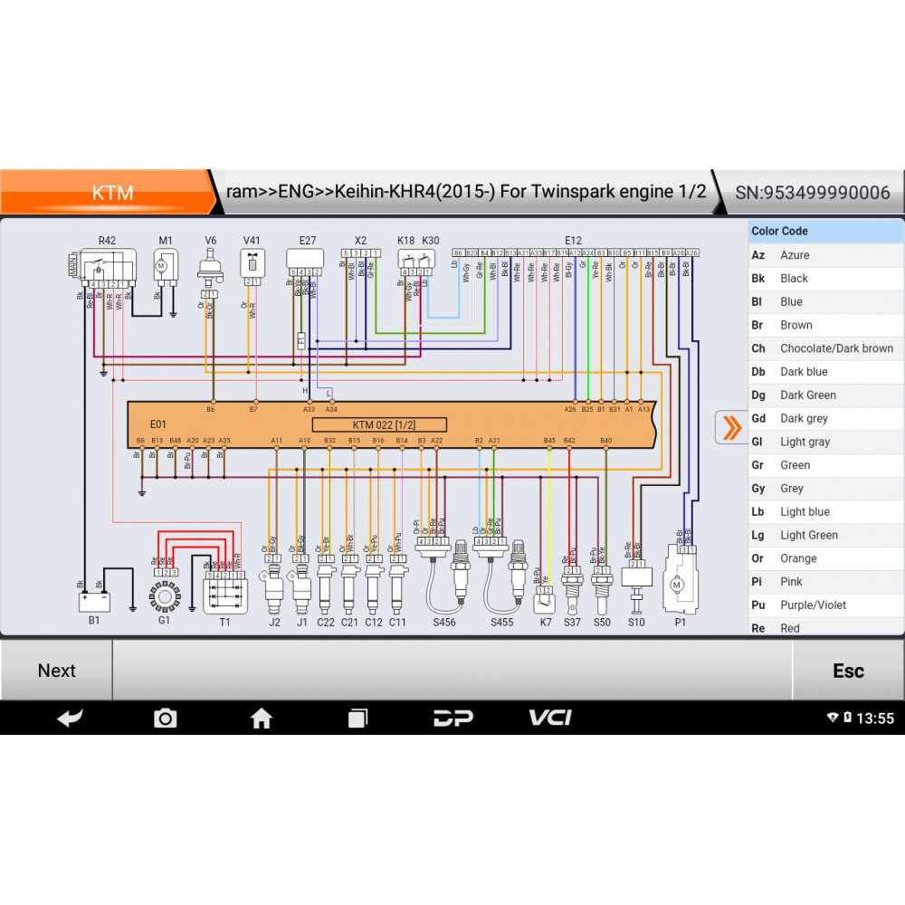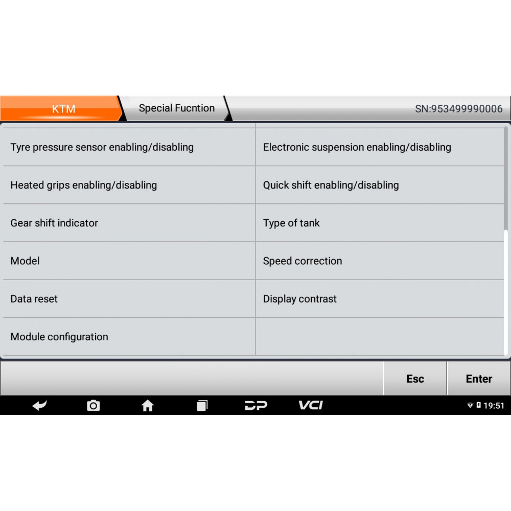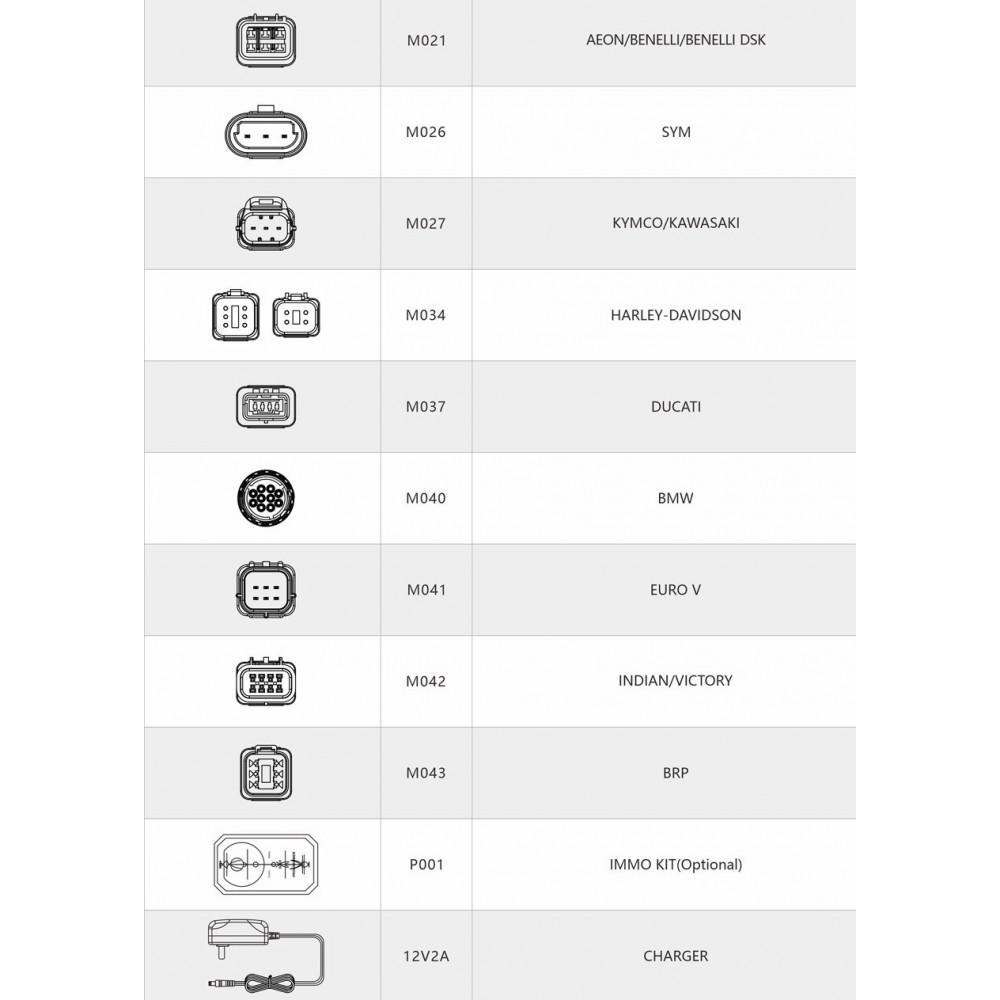 - автоматическое сканирование всех систем мотоциклов ( ДВС, АБС, иммо, приборная панель, TPMS, роботизированная КПП, система стабилизации);