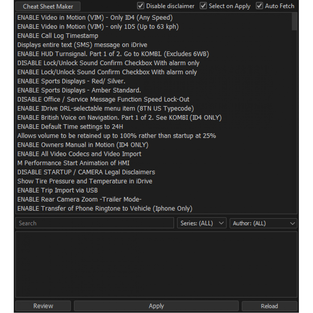 Лаунчер призначений для фахівців з ремонту та налаштування автомобілів BMW, які активують / деактивують деякі функції, оновлюють мікропрограмне забезпечення ЕБУ, знімають обмеження, проводять адаптації після заміни блоків.