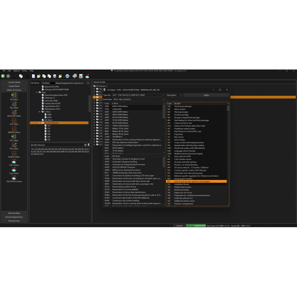 Esys Ultra це інженерна програма для FDL кодування і програмування автомобілів BMW / Mini / Rols Roys (F, G, I серій), що володіє широким функціоналом і високою швидкістю роботи. В комплекті довічні безкоштовні оновлення. Підтримується робота з найновішими версіями E-sys.