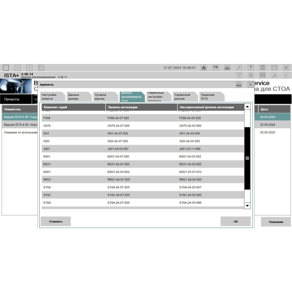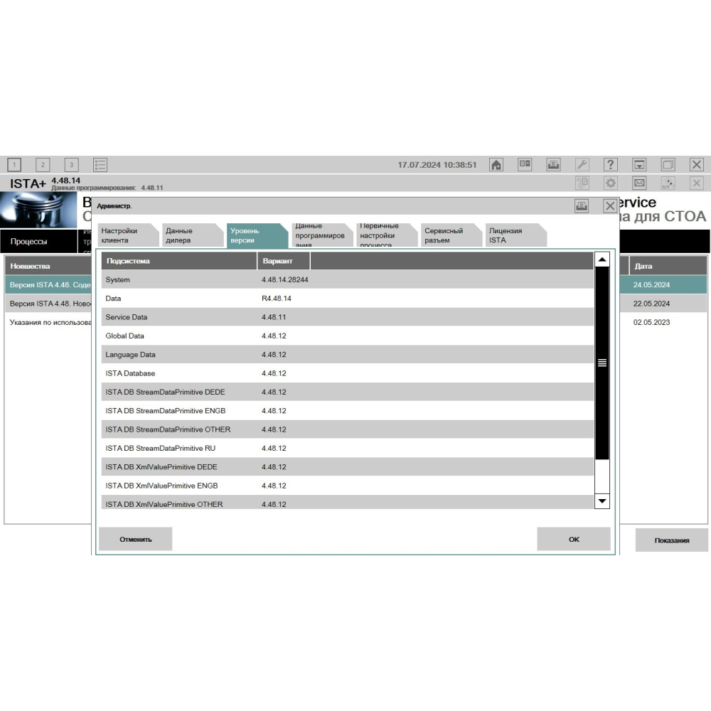 Доступні версії для установки BMW ISTA: