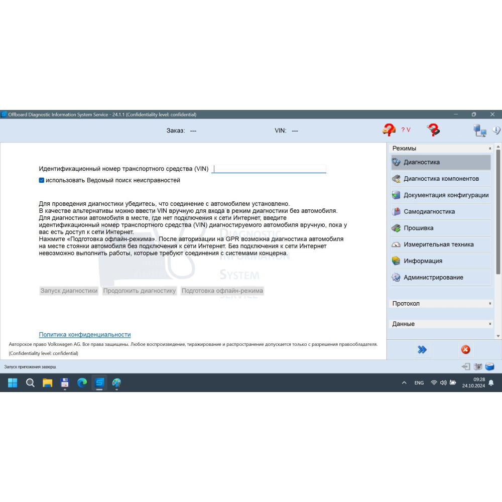 - Из-за новой системы защиты, используемой в VAG с версии 23.1.x и выше, автоматическая идентификация автомобиля по VIN больше не работает в автономном режиме. Вам придется выбирать модель вручную.