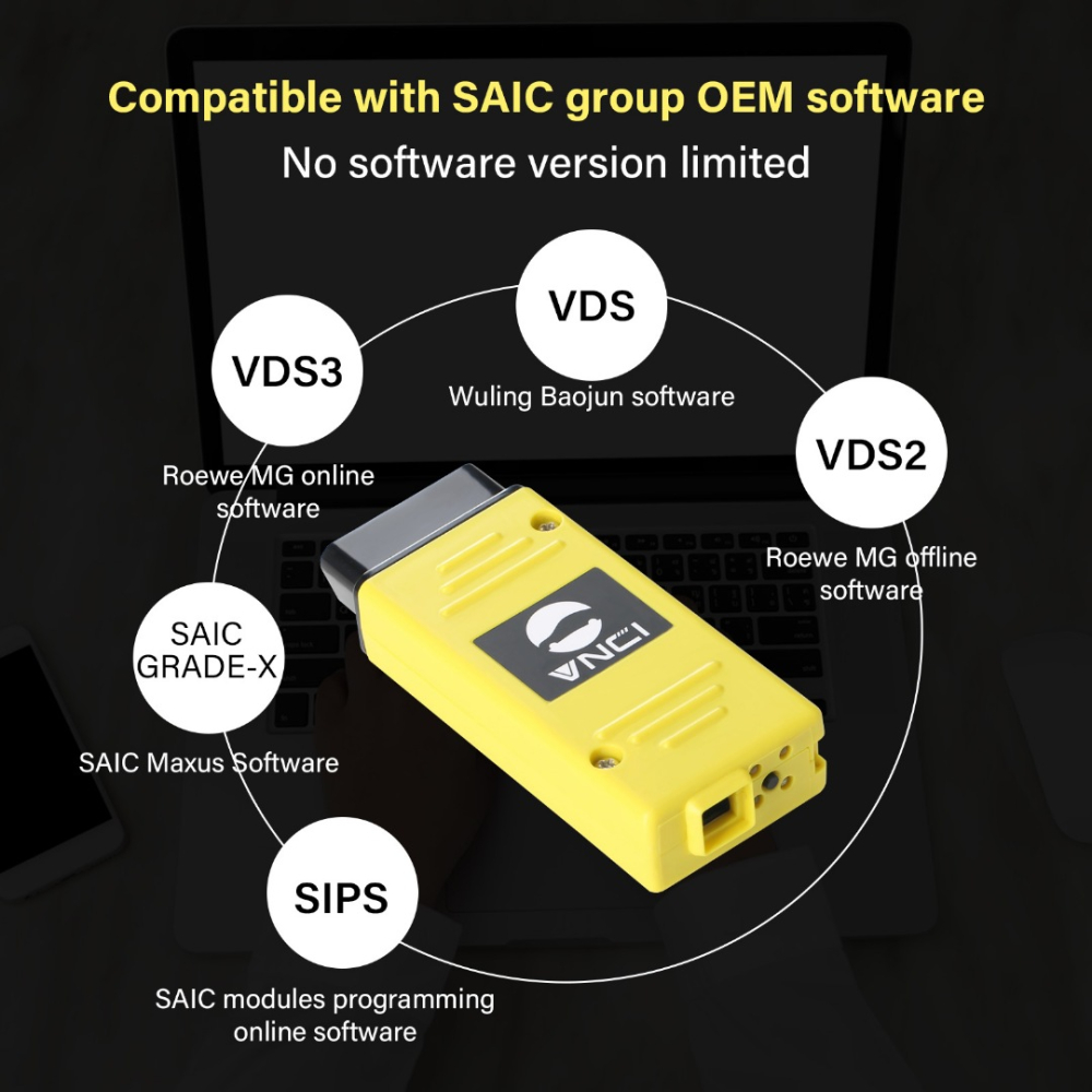 Автосканер VNCI VDI3 Roewe MG Wuling Maxus совместим с оригинальным драйвером VDS / VDS2 / VDS3 / GRADE-X и поддерживает программное обеспечение для онлайн программирования SIPS. Совместим с протоколами CAN FD и DoIP по принципу подключи и работай. Является аналогом диагностического инструмента VDI3.